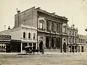 ![]() View across Collins street, showing The Bank of New South Wales building with City of Melbourne Bank Ltd on the left | |