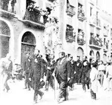 The banner of Misericordia (Mercy) is a work of the Catalan architect Antoni Gaudí projected for the procession to the Sanctuary of Misericordia in Reus of the reusians residing in Barcelona as one of the acts for the 1900 Holy Year.[1] It is known by the two front and back photographs published in the Semanario Católico de Reus (Reus Catholic Weekly magazine) in July of that year.[2] It included another photograph of the procession in which Gaudí is seen as part of a large group of pilgrims and the banner being carried by one of them.