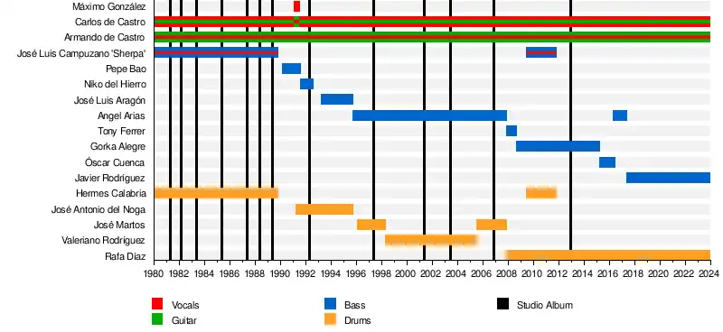 • José Luis Campuzano ("Sherpa") – bass, vocals (1980–1989, 2009–2011)