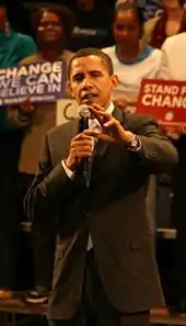 Obama speaking at a rally in Conway, South Carolina on August 3, 2007.[37]