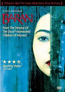 Baran (Persian: باران; literally: Rain) is a 2001 Iranian film directed by Majid Majidi, based on an original script by Majid Majidi. The movie is set during recent times in which there are many Afghan refugees living on the outskirts of Tehran. Baran won a number of awards both nationally and internationally for the director and writer Majid Majidi.[1][2]
