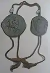 The seals of the signatories to the letter survive in excellent condition. Although they are now detached from the document, they form the earliest contemporary group of true coats of arms, the rules of heraldry having only been established at around the start of the 13th century, and were stated for that reason by Lord Howard de Walden to be of very great value to students of heraldry.[2] Many of the armorials also appear in the near contemporary Falkirk Roll of Arms made before the Battle of Falkirk in 1298 and in the near contemporaneous stained glass shields in Dorchester Abbey, Oxfordshire.[3] Many are also Blazoned in verse in the Roll of Caerlaverock of 1300.