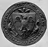 The seals appended by hempen cords to Exemplar B were "tricked" (i.e. reproduced by drawing) by Lancaster Herald Nicholas Charles in 1611.[8] He also made a transcript of Exemplar B., which clearly was then in a better state of preservation than today.[9] Whilst his drawings provide much detail which is otherwise difficult to see in photographs of the seals themselves, some of his transcripts of the legends are inaccurate.[10]