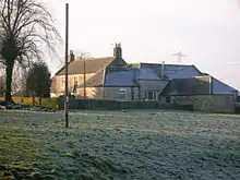 Drumbuie House, built in 1702, is one of the oldest inhabited houses in the Beith area and has been the home of the Boyd family for at least three generations.[55] Drumbuie was part of the Barony of Giffen and was feud out to various local millers and farmers in the 17th century.[56] Close records that Drumbuie Farm incorporates an early 18th-century two-storey house, originally thatched, which was built around 1736 for Hugh Patrick, this being stated on a plaque on the 1815 addition.[57] A James Nevin of Drumbuie was a witness to the will of Hugh Nevin of Kirkwood in 1677.[58] Drumbuie mill was located nearby on the Dusk Water, however no obvious physical remains are extant.
