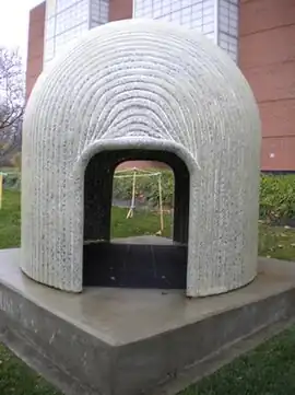 Barrow is a public sculpture by an American artist Jill Viney. It is located on the Indiana University-Purdue University Indianapolis campus, which is near downtown Indianapolis, Indiana. The sculpture is just north of the Herron School of Art on New York Street. This sculpture is made from a double wall of fiberglass encasing a sheet of metal meshing. Barrow measures 8-foot (2.4 m) and 8-foot (2.4 m) in diameter. Barrow was installed at IUPUI at noon on 7 May 2008.[1]