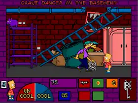 Bart is able to utilize a variety of weapons in the game, including a burp gun, a slingshot, spray paint, and water balloons.[6] The player controls these weapons with either a keyboard or a joystick. The joystick control has two modes: one for shooting and one for jumping.[7] Whenever the player misses one of the creatures and they are able to hit Bart, the life bar, called the "Cool-O-Meter", drops. In order to regain Bart's coolness, the player must find a cool item that he can use.[7] When the player has completed all levels, Bart goes to the Krustyland amusement park to save Krusty from Bob.[6]