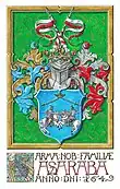 Ana Peica of Caransebeș was the daughter of Ioan Peica of Caransebeș (Hungarian: karánsebesi Pejka János) and the granddaughter of Petru Peica of Caransebeș (Hungarian: karánsebesi Pejka Péter) and his wife, Caterina Ostrovel[15] (Hungarian: Osztrovy Katalin). The Ostrovels were a petty noble family from the County of Hunedoara (Latin: Comitatus Hunyadiensis, Hungarian: Hunyad vármegye), that has since died out.[16] The Peicas were in their own right a powerful family of the Banate of Lugoj and Caransebeș, securing important matrimonial alliances. Ana's first cousin, also named Ana, was married to Nicolae Gârleșteanu of Rudăria[15] (Hungarian: rudariai Gerlistyei Miklós), a progenitor of the Barons Gârleșteanu of Uriu and Gârliște (Hungarian: báró aranyi és szentgerlistyei Gerliczy), ennobled with new arms in 1774, and then granted the title of Hungarian barons in 1777. Her sister, Magdalena, was married to Ioan Fiat of Armeniș[15] (Hungarian: eörményesi Fiáth János), whose descendants, the Barons Fiat of Armeniș (Hungarian: báró eörményesi Fiáth, German: Freiherr Fiath von Eörményes) would be granted the title of Austrian barons in 1858, and that of Hungarian barons in 1874.