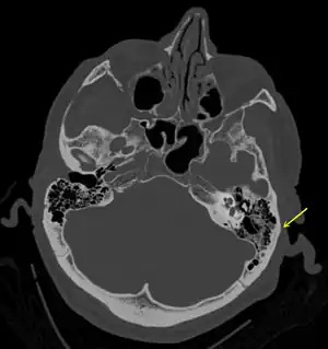 - 1 2 3 4 5 6 7 8 9 10 11 12 13 14 15 16 17 18 19 20 Baugnon, KL; Hudgins, PA (August 2014). "Skull base fractures and their complications". Neuroimaging Clinics of North America. 24 (3): 439–65, vii–viii. doi:10.1016/j.nic.2014.03.001. PMID 25086806.