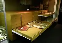 The Basilica of our Lady possesses an important historical church treasure consisting of relics, reliquaries, textiles and liturgical objects. From the 14th century onwards it had a separate treasury room (Dutch: schatkamer), which at one point was located in the Tower of Saint Barbara (also the church's archives). It is believed that the choir gallery of Our Lady's was specifically built in the 12th century for the public showing of the recently acquired relics from Constantinople.[10] During the Middle Ages great rivalry existed between Maastricht's two religious chapters. At several occasions the chapter of Saint Servatius complained about the fact that the canons at Our Lady's showed their relics in the open air, which only St Servatius' was allowed to do. The relics display, especially at the time of the Septennial Pilgrimage (Dutch: Heiligdomsvaart), drew large numbers of pilgrims from all over Europe, bringing in revenue for the churches.[11]