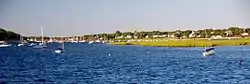 Bass River is an estuary and village in South Yarmouth, Massachusetts, United States.[1][2] The estuary separates the towns of Yarmouth and Dennis at the central, southern sections of the towns. At its widest and most southerly point, it opens to and meets Nantucket Sound. Its brackish, northwestern end flows into Follins Pond, from there winding further north as a brook, to Mill Pond then an underground stream that nearly bisects Cape Cod.