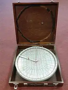 The Battenberg course indicator is a mechanical calculating device invented by Prince Louis of Battenberg in 1892 for taking station on other vessels whose range, bearing, course and speed are known. By extension, it has a range of other functions related to relative velocity calculations.