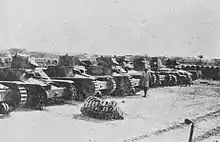 Kassala was defended by fewer than 500 men of the Sudan Defence Force (SDF, Major-General William Platt the al-qa'id al-'amm [Leader of the Army], known as the Kaid) and local police, who remained under cover during a twelve-hour bombardment by the Regia Aeronautica, then knocked out six Italian tanks and inflicted considerable casualties on the attackers. At 1:00 p.m., Italian cavalry entered Kassala and the defenders withdrew to Butana Bridge, having lost one man killed, three wounded and 26 missing, some of whom rejoined their units.[2][3] Italian casualties were 43 men killed and 114 wounded.[1] At Kassala, the 12th Colonial Brigade built anti-tank defences, machine-gun posts and strongpoints.[4][lower-alpha 1]