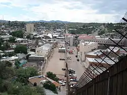 ![]() The U.S.-Mexico border in Nogales in 1898, 2008 (pre-2011 wall), and 2021. International Street/Calle Internacional runs through the center of the image between Nogales, Sonora (left), and Nogales, Arizona (right). Note border posts without fence and rail line in 1898. Customs Post where the first shooting occurred is in center of image this side of rail line. Click on image to enlarge. | |||||||
