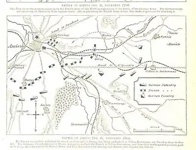 The Battle of Amiens, also known as the Battle of Villers-Bretonneux, was fought on 27 November 1870 between French and Prussian forces during the Franco-Prussian War (1870–1871). It ended in a Prussian victory, forcing the French to retreat and allowing the Prussians to capture Amiens, France.