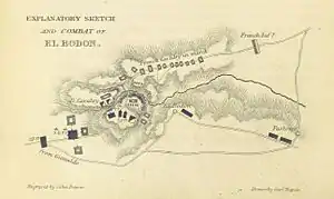 During these operations, the French pushed forward a strong body of infantry, which succeeded in cutting off the light division, but by a judicious movement of Major General Craufurd, who crossed the Agueda, that division was saved, and managed a retreat in good order.[1]