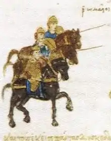 The Byzantine light troops played a prominent role in the battle; posted on high ground they are described as raining missiles down onto the near helpless Seljuqs. Many of the Seljuq soldiers tumbled into the river and were drowned.[9] The Seljuq commander, known as "Atapakos" in Greek sources—evidently a bearer of the title of Atabeg—tried to help his forces cross the river by rallying the most heavily armed of his cavalry and attacking the Byzantines. This attack having failed, he tried to save himself by swimming across the river with his horse. When he reached the opposite shore, however, he was killed by an Alan soldier of the Byzantine force.[10] Following the death of their commander the Seljuq troops fled in disorder, with a great number of them being drowned in the river; Choniates stating that only a few out of many thousands were able to save themselves. On the Byzantine side, the general Michael Aspietes fell; he was drowned in the Meander when thrown by his wounded horse.[11]