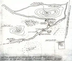 The Second Battle of Las Cruces, or the New Year's Day Battle, was a major engagement during the American occupation of Nicaragua. It was fought on 1 January 1928, during an expedition to destroy a Sandinista fortress. A column of United States Marines and Nicaraguan National Guardsmen were attacked by a superior force of rebels entrenched on Las Cruises Hill and, after a long battle, the Americans and Nicaraguans routed the Sandinistas and captured their positions.[1][3]