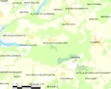 From the ramparts, the Germans could see all movement from the Ailette to the Aisne and on the spurs running down to the Aisne from the Chemin-des-Dames ridge. There was a clear view northwards from the fort over the Ailette, along the lower edge of the west side of the Forest of Coucy and past the village of Brancourt; to the east were two groups of hills round Anizy, on the north bank of the Ailette. Laon was about 13 km (8 mi) distant and visible at the end of the valley of the Ardon, which joins the Ailette north of Chavignon. Further east, beyond the Bassin d'alimentation reservoir, was the hilltop village of Monampteuil. East of the reservoir, the valley of the Upper Ailette was visible as far as the Troyon–Laon road. South of Fort de la Malmaison, in the centre of the plateau closer to the French lines, lay the huge Bohery Quarry, where the ground began to slope steeply down towards the Aisne valley. In October 1917, German engineers were still connecting the quarry with the Montparnasse tunnel, other underground works and the galleries under the fort. The Montparnasse, Fort de la Malmaison and Bohery excavations, the Fruty Quarry on the edge of the Soissons–Laon road, about 1.6 km (1 mi) east of Laffaux Mill and many other subterranean obstacles faced the Sixth Army.[17]
