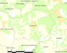 The ground down to the forests of Pinon and Rosay, which covered most of the uneven plain south of the marshes around the Ailette, comprised numerous ravines which in places were still wooded. The sides of the ravines wound around, facing all directions and could not be swept from end to end by artillery-fire. On the western flank, the Vauxaillon valley ran along most of the western and eastern slopes of the ridge and plateau above Laffaux. The Mont des Singes Spur was to its east and the Vauxaillon valley, which narrowed to the Allemant ravine, went round and then northwards, joining a ravine which curved round the Allemant plateau west of Pinon. The Allemant plateau was cut from south to north by the narrow St. Guillain ravine and other ravines lay below the crest of the Chemin-des-Dames ridge. From Vaudesson a ravine descended northwards to the west of Chavignon, where it met the western of two gullies, at the head of which was Malmaison Farm; Fort de la Malmaison was on the plateau above the eastern gully. The plateau was separated from the Filain and Pargny-Filain area, on the east of the French attack front, by a valley into which the eastern or Bois de la Garenne gully opened, just south of Chavignon.[27]