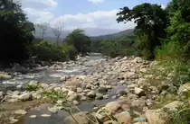 The Liberals hoped to cross the Zulia River west of Cúcuta and escape the Conservative forces. The rebels crossed the Zulia at a tributary, the Peralonso River. Although the Peralonso was shallow enough for the soldiers to wade across, rain had swollen the water, forcing them to cross at La Laja Bridge, a small suspension bridge that spanned the river.[21][22][4] The rain stopped on the night of 14 December.[23] Conservative advance forces under González caught up to the Liberals at the Peralonso on the morning of 15 December, and both sides dug trenches on either side of the river.[24] The Liberals occupied the western bank of the river, and the Conservatives occupied the eastern bank. The two lines of battle stretched from Amarilla to the north to Caimito in the south.[11]