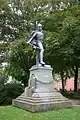 Plaque at the site of Schill's death (left) and statue (right) in Stralsund