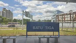 The Batu Tiga Komuter station is a KTM Komuter train station located in Batu Tiga, Selangor, Malaysia and served by the Port Klang Line.
