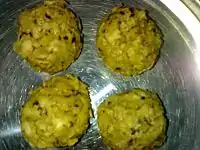 Food offering/Naivedyam: rice flour shaped into the fruits of neem tree is deepfried.