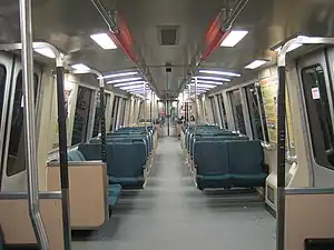 Originally all the cars had carpeted flooring. Due to similar concerns regarding cleanliness, the carpeting in all of the cars has been removed.[25] The A and B, and C2 cars now feature vinyl flooring in either grey or blue coloring, while the C1 cars feature a spray-on composite flooring.