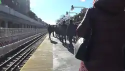 As of 2012, all three tracks have been replaced with a new track bed and new track panels.[5] From January 18, 2016, to May 22, 2017, the Manhattan-bound platform at this station was closed for renovations and a temporary wooden platform was placed over the Coney Island-bound express track for the Manhattan-bound service.[6][7][8] The Coney Island-bound platform was closed for a much longer period of time, from July 31, 2017[9][10] to July 1, 2019.[11] During this time, all southbound trains used the northbound express track and the temporary platform, with short-turn W trains terminating here instead of their normal terminus at Gravesend–86th Street.[12]