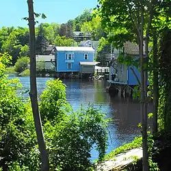 The Bear River is a minor river in western Nova Scotia, Canada. Flowing from south to north, it is 40 kilometres (25 mi) long from its headwaters to its discharge into the Annapolis Basin, some 6 kilometres (3.7 mi) east of Digby.[1] The river is tidal for the last 9.7 kilometres (6.0 mi) of its length.[2] The village of Bear River (which today calls itself "The Tidal Village")[3] is situated near the head of the tide where shipbuilding took place in the nineteenth century.