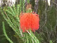 Beaufortia sparsa, commonly known as swamp bottlebrush,[2] is a plant in the myrtle family Myrtaceae, and is endemic to the southwest of Western Australia. It is an erect or spreading shrub with round, dished leaves crowded on the younger stems, and bright red flower spikes in the warmer months.