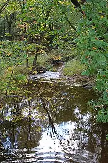 A red maple / yellow birch / eastern hemlock palustrine forest is also found in the vicinity of Beaver Run, as is a buttonbush / highbush blueberry shrub swamp. Both of these habitats contain several plants not found in the highbush blueberry / meadowsweet shrub swamp.[5]
