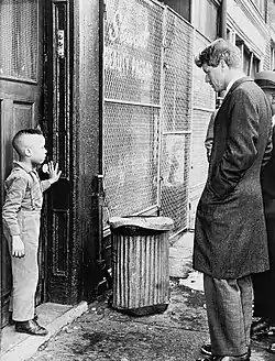 In 1967, Robert F. Kennedy, U.S. senator for New York state, launched a study of problems facing the urban poor in Bedford–Stuyvesant, which received almost no federal aid and was the city's largest non-white community.[24][25] Under Kennedy's leadership and with the help of activists, the Bedford Stuyvesant Restoration Corporation was established as the United States' first community development corporation.[26] The Manhattan-based Development and Services Corporation (D&S) was established with business, banking and professional leaders which advised and raised private funding for the BSRC's projects.[26] The abandoned Sheffield Milk bottling plant on Fulton Street was turned into the BSRC offices in 1967,[26] and the BSRC bought and renovated many housing units as well as administered a $73 million mortgage assistance program to encourage African-American homeownership.[26] The BSRC also implemented a controversial plan by I.M. Pei to close off St. Marks Avenue and Prospect Place, between Kingston and Albany Avenues, and convert these into community spaces.[26]
