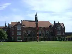 The Main School Building, originally built in 1891, is a Gothic Revival Grade II listed building.[14][15] On the night of 3–4 March 1979, much of the building was gutted by fire as a result of arson. The internal structure of the building was destroyed and thirty classrooms were lost. Almost all pupil records were saved but books, furniture and the large collection of portraits of former headmasters were lost. However, the school was in full operation on Monday 5 March.[16][17]