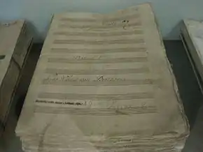 Forced to squeeze in his benefit concert at a very busy time, Beethoven was handicapped in summoning adequate musical forces. In principle, he had access to the professional orchestra of the Theater an der Wien,[11] but many of its members had a conflicting engagement: the Tonkünstler-Societät, a benevolent society for the widows and orphans of musicians, was putting on one of its four annual oratorio performances at the Burgtheater.[12] The Society generally required its members to participate in its benefit concerts or pay a fine;[13] this reduced the number of skilled professionals available, and amateurs were required to fill the gaps.[14] The orchestra thus available to Beethoven was a moderately sized ensemble that is likely to have had in the order of six to eight first violins for the evening.[11] Amateur and semi-professional concerts of the period saw larger orchestras.[15]