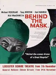 Behind the Mask is a 1958 British drama film directed by Brian Desmond Hurst and starring Michael Redgrave, Ian Bannen and Lionel Jeffries.[2] It portrays the life of a surgeon in a busy hospital.[3]