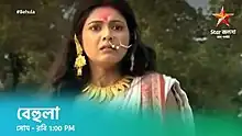 Behula is a mythological Bengali television serial which was broadcast on GEC Star Jalsha in 2010, weekdays at 9:30pm . It starred Payel Dey, Arka Majumdar, Rimjhim Mitra, Chandrayee Ghosh, Kaushik Chakraborty and Rupanjana Mitra, produced by Shree Venkatesh Films, it is based on the story of Behula and Lakhindar.[1][2] It has been aired on Star Vijay as a dubbed Tamil show Mangayin Sabatham and on Sahara One as a dubbed Hindi show under the same name. This serial has also been dubbed in Assamese language as Soti Beula and aired on Focus Hifi. It was re-aired on Star Jalsha during lockdown period, due to COVID-19.[3]