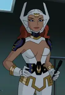Like all the New Gods, Bekka has superior Strength, speed, endurance, immortality and is nigh-impervious to physical afflictions including the immunity to diseases. She is also a gifted scientist just like her father, having memorized how to utilize and create her own Mother Box's as well as invent a host of other New Genesis devices like a phase shifter device built into her suit which allows her to become Invisible and Intangible as well as cloak the presence of others around her. Also, she is a skilled warrior and adept at hand-to-hand combat, able to utilize both new Genesisian and apokoliptian weaponry.[10] Her god power being a goddess of love of sorts revolves around emotional manipulation and compulsion, able to draw out and amplify resting or repressed feelings in individual beings around her and move them to act on it as was the case with Orion and Batman. Two largely emotionally repressed beings who denied themselves the embrace of love or compassion in any of its forms. The only way to break the spell of her attractive compulsion is to consummate it in physical union.[11] She also possesses some kind of force projection that knocked over a horde of parademons or badly concuss a mind controlled Superman. Bekka also has a healing touch enabling her to expedite the regeneration process of the fatally wounded variety.