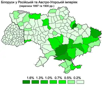 According to censuses, the native languages of ethnic Belarusians in Ukraine were:[3][4]