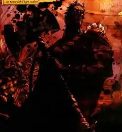 During Illyana's seduction, Belasco also attempts to transform Ka-Zar and Shanna into demons to be parents to a new demonic race. He is seemingly defeated when Ka-Zar impales Belasco on his own sword.[7] Belasco is next revealed to be the new master of the Cat People.[8]