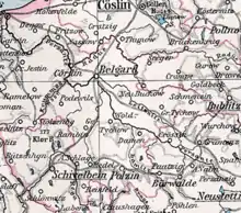 In 1910, Belgard district covered an area of 1,132 square kilometers.[6] With the Prussian district reform of October 1, 1932, the district was significantly enlarged in the following ways:[7]