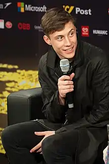 Shortly after the first semi-final, a winners' press conference was held for the ten qualifying countries. As part of this press conference, the qualifying artists took part in a draw to determine which half of the grand final they would subsequently participate in. This draw was done in the order the countries were announced during the semi-final. Belgium was drawn to compete in the first half.[25] Following this draw, the shows' producers decided upon the running order of the final, as they had done for the semi-finals. Belgium was subsequently placed to perform in position 13, following the entry from Australia and before the entry from Austria.[26]