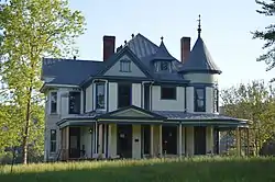It is a two-and-a-half-story Free Classic-style frame house. [2]