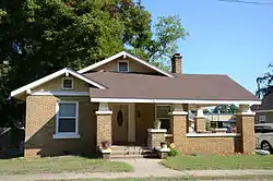 The Bell House is a historic house at 302 West Woodruff Avenue in Searcy, Arkansas. It is a single-story brick structure, with an irregular roofline. A porch, headed by a side gable entrance projects to the right, continuing across the front to meet a small front-gable projecting in front of a higher front-facing gable roof. The porch is supported by high brick piers topped by short wooden posts. Built in 1915, it is a fine local example of Craftsman architecture.[2]