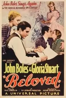 Beloved is a 1934 American pre-Code drama film directed by Victor Schertzinger and written by Paul Gangelin and George O'Neil. The film stars John Boles, Gloria Stuart, Morgan Farley, Ruth Hall, Albert Conti and Dorothy Peterson. The film was released on January 22, 1934, by Universal Pictures.[1][2][3]