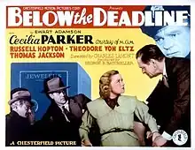 Below the Deadline is a 1936 American crime drama film directed by Charles Lamont and starring Cecilia Parker, Russell Hopton and Theodore von Eltz. It was produced and distributed by Chesterfield Pictures, which focused on low-budget productions and was soon after merged into Republic Pictures.