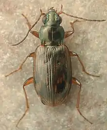 - ↑ Maddison, David R. (2012). "Phylogeny of Bembidion and related ground beetles (Coleoptera: Carabidae: Trechinae: Bembidiini: Bembidiina)". Molecular Phylogenetics and Evolution. 63 (3): 533–576. doi:10.1016/j.ympev.2012.01.015. PMID 22421212.