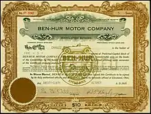 Share of the Ben-Hur Motor Company, issued 26. October 1916