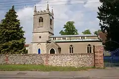 The Church of England parish church of St Helen is partly ancient. John Marius Wilson described it: "variously late pointed Norman and decorated; has a modern tower; contains a Norman font and two [monumental] brasses; and is very good."[13] The church parish includes the hamlets of Fifield and Crowmarsh-Battle or Preston-Crowmarsh. The village is often confused with RAF Benson, which is a well-known RAF station and airfield. The airfield boundary is adjacent to the village, and the aerodrome's construction closed the former "London Road". The RAF buildings are on the opposite side of the airfield to Benson village, adjacent to the village of Ewelme.