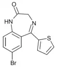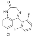 - ↑ Blair T, Webb GA (September 1977). "Electronic factors in the structure-activity relationship of some 1,4-benzodiazepin-2-ones". Journal of Medicinal Chemistry. 20 (9): 1206–1210. doi:10.1021/jm00219a019. PMID 926122.